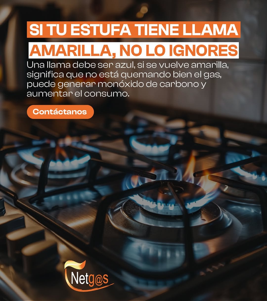 La llama de los equipos que funcionan a gas, tales como estufas, calentadores, secadoras y chimenea debe ser siempre de color azul, silenciosa y estable. Si la llama presenta tonalidades amarillas o naranjas, esto significa que la combustión no se está realizando adecuadamente. En estos casos debes de solicitar nuestro servicio preventivo Netg@s, ya que puedes estar en riesgo de intoxicación de algún miembro de tu familia y no saberlo.